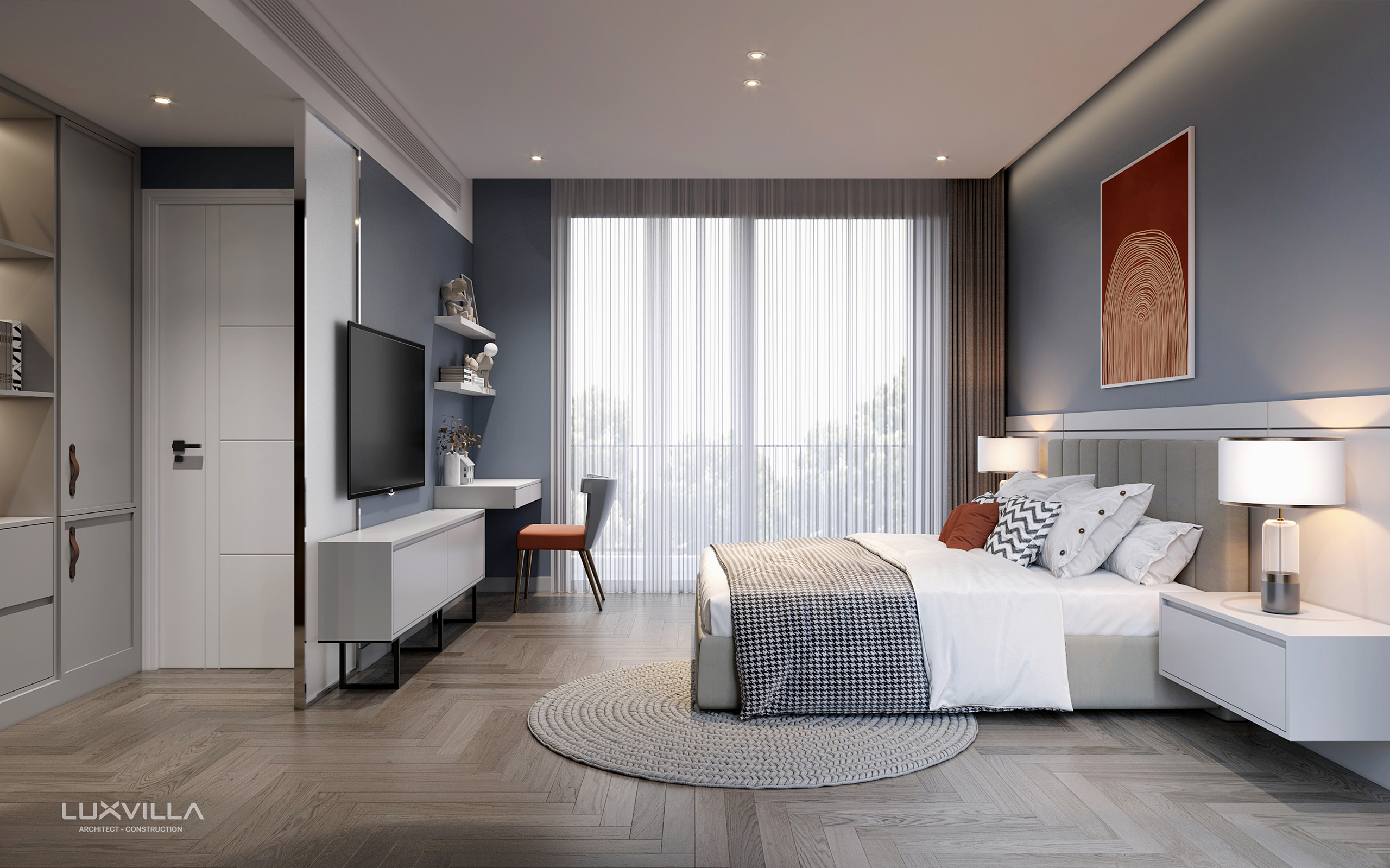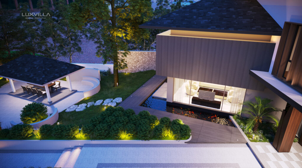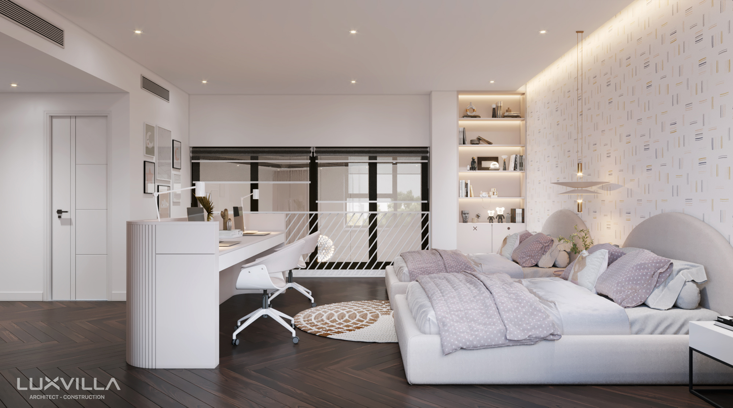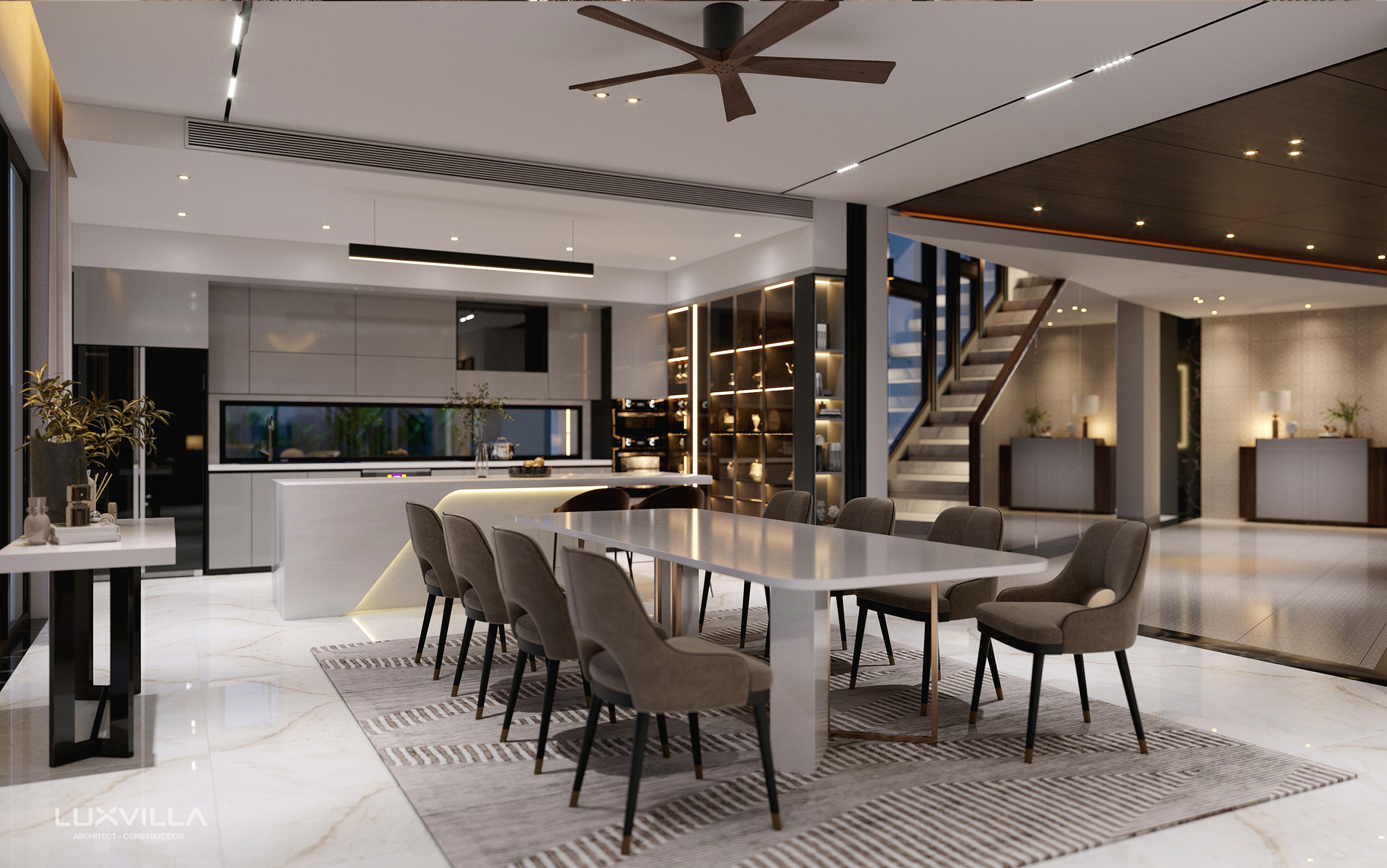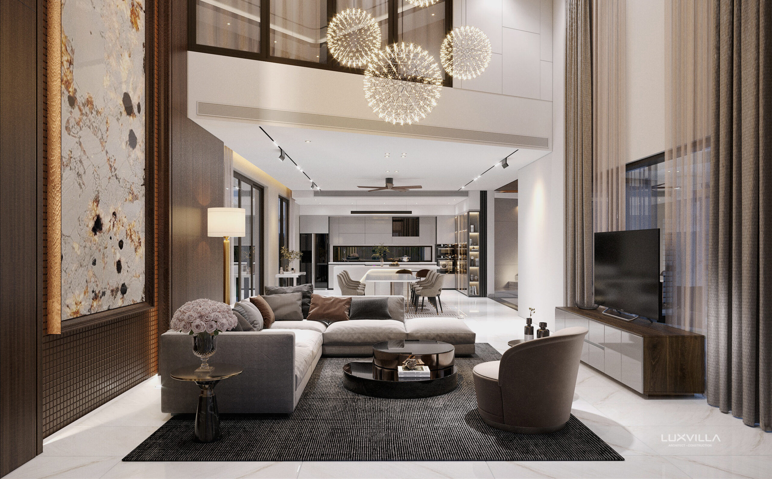 Thiết kế nội thất với màu sắc tương phản và vật liệu cao cấp tạo nên không gian sống sang trọng và tiện nghi cho gia chủ. Luxvilla cũng tính toán những giải pháp vật liệu tối ưu để có thể triển khai thi công một cách thuận lợi và vẫn đảm bảo thiết kế của ngôi nhà.