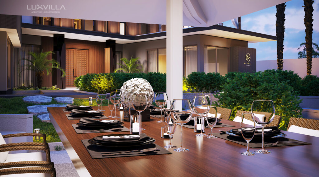 Với mong muốn có một tổ ấm yêu thương cho cả gia đình và một không gian sống tiện nghi hiện đại, 2 vị gia chủ (NGÔ GIA VILLA) ở Quảng Bình đã tìm đến LuxVilla. Thấu hiểu trăn trở của gia chủ khi phải trải qua nhiều trận lũ lịch sử vì vậy đội ngũ KTS. Luxvilla đã đưa ra giải pháp giật cấp sân vườn và tạo những phân tầng không gian để hạn chế ảnh hưởng của thiên tai. Kiến trúc ngôi nhà là các hình khối có sự liên kết liền kề giữa khu vực nhà ở và kinh doanh.